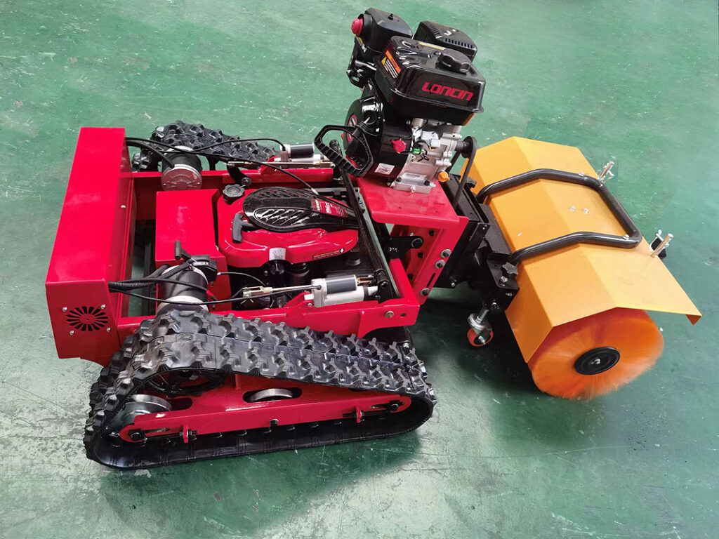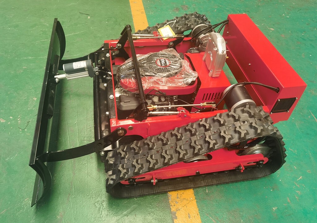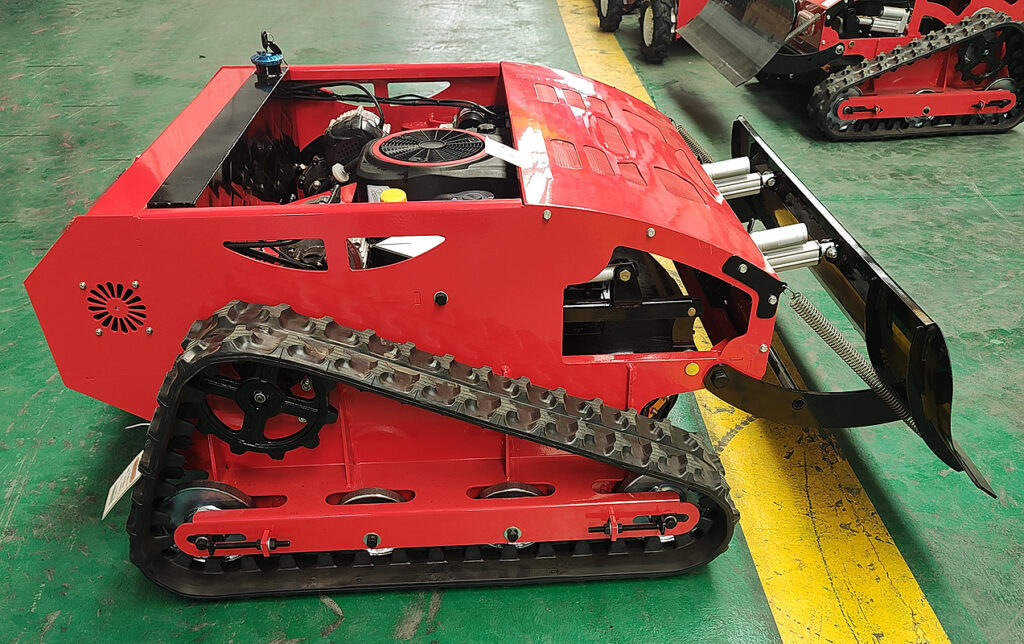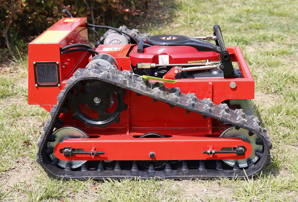 Kosiarki mogą być wyposażone zarówno w 4 pneumatyczne koła lub w gąsienice (do wyboru, nie ma to wpływu na cenę).